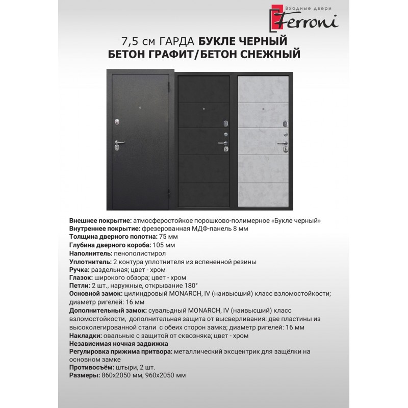 - Внутреннее покрытиефрезерованная МДФ-панель 8 мм, цвет – бетон графит