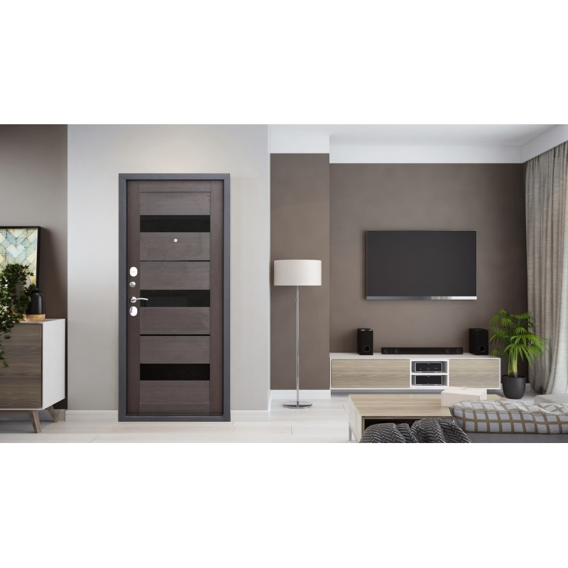 - Внутреннее покрытиецарговая МДФ-панель 16 мм, цвет – темный кипарис, вставки из глянцевого стекла Лакобель