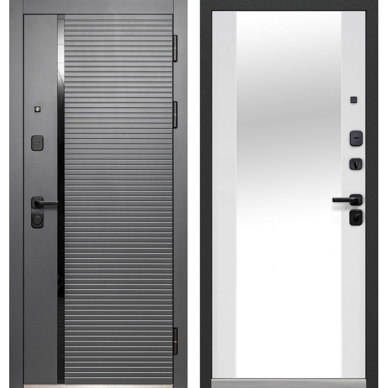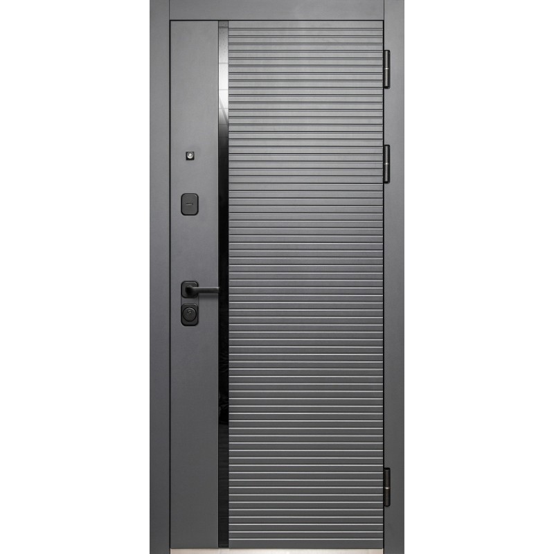 - Внешнее покрытие: фрезированная МДФ-панель 12 мм, вставка черный лакобель, цвет пленки "Сатн графит".