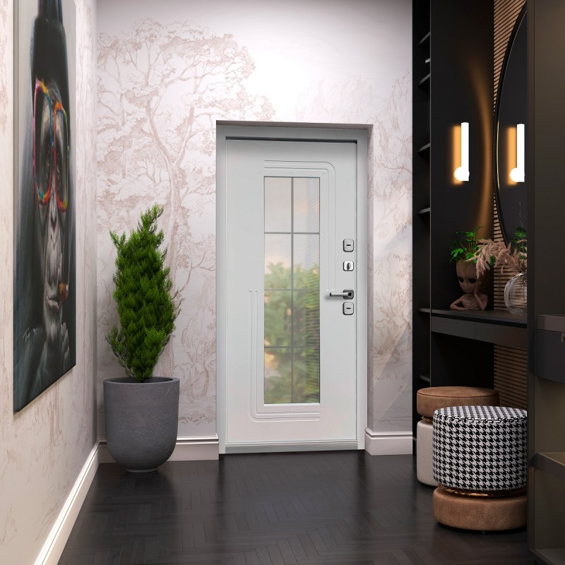 - Терморазрыв 24мм: двухкамерный спейсер из ПВХ на коробе и полотне двери.