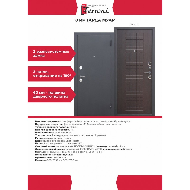 - Размеры860х2050 мм, 960х2050 мм