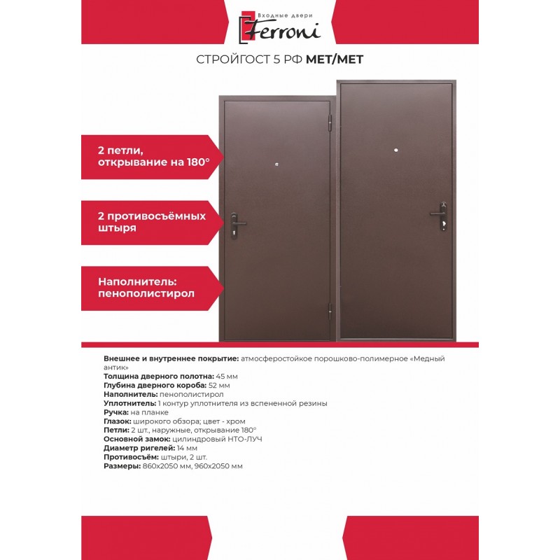 - Размеры860х2050 мм, 960х2050 мм